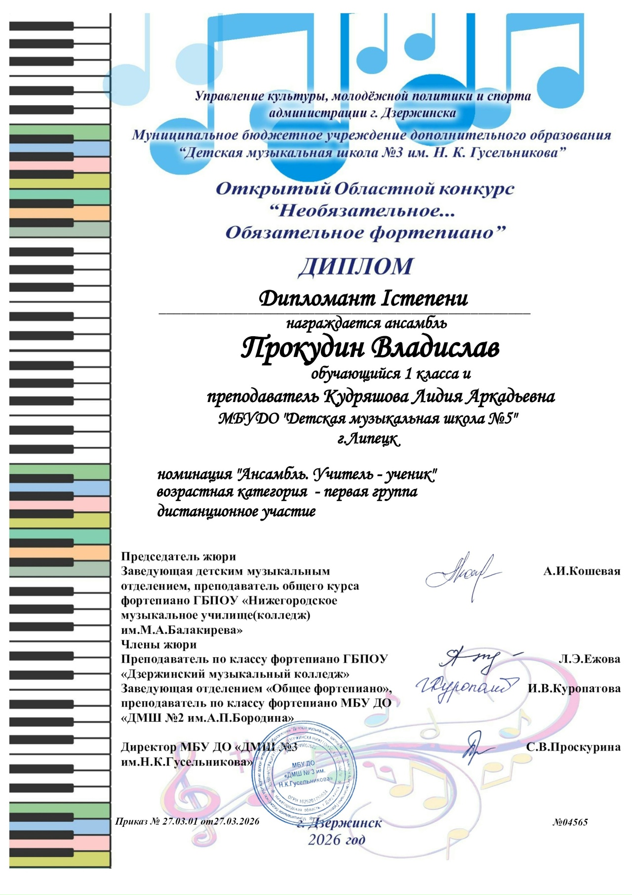 В Детской музыкальной школе №3 имени Николая Гусельникова (г. Дзержинск) завершился Открытый областной конкурс "Необязательное... обязательное фортепиано".